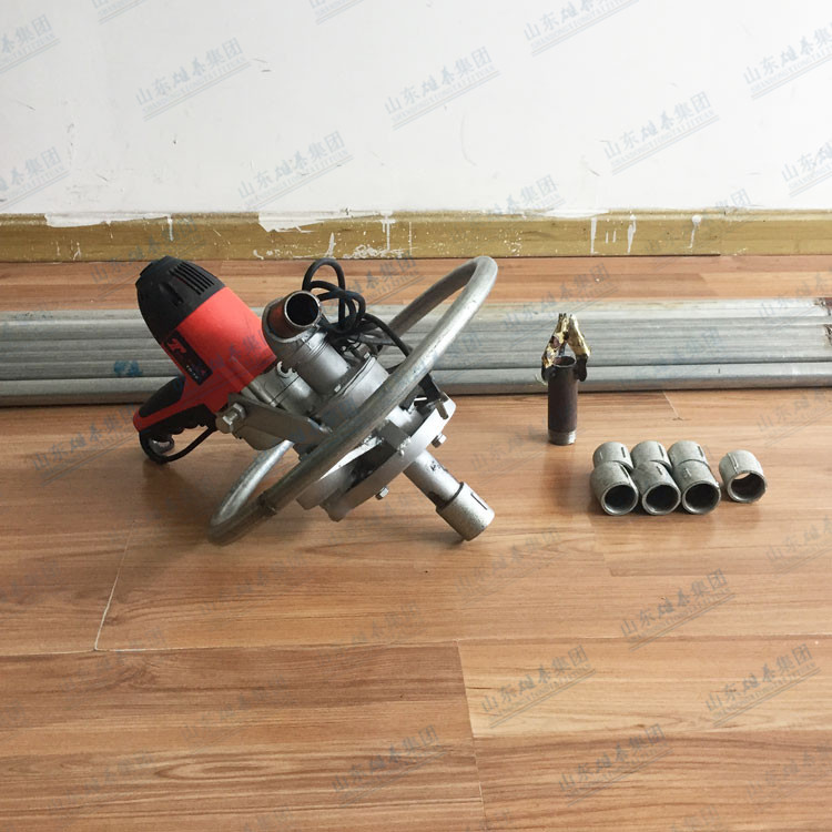 本款打井機采用了多齒輪設計,雖然增加了生產成本和制造工藝,但這樣設計增加了打井機力量(就像汽車一檔比四檔有力、還便于掌握一樣的道理),打井有力,打井速度快、便于掌握。如果齒輪少了,一千瓦的電機還沒有七百多瓦的電機力量大、而且轉速高、打井時難于掌握。這款多齒輪結構鉆井機經過許多用戶多年使用,打井效果非常理想!便攜式小型民用電動打井機廣泛應用于家庭/工廠生活用水打井、農田灌溉水井、安裝水空調、工地打樁等。本公司生產的便攜式小型民用電動打井機機頭,可隨意選配鉆頭,鉆頭價格另算。也可另配鉆桿,鉆桿直徑是32mm、一根長約1.5米。