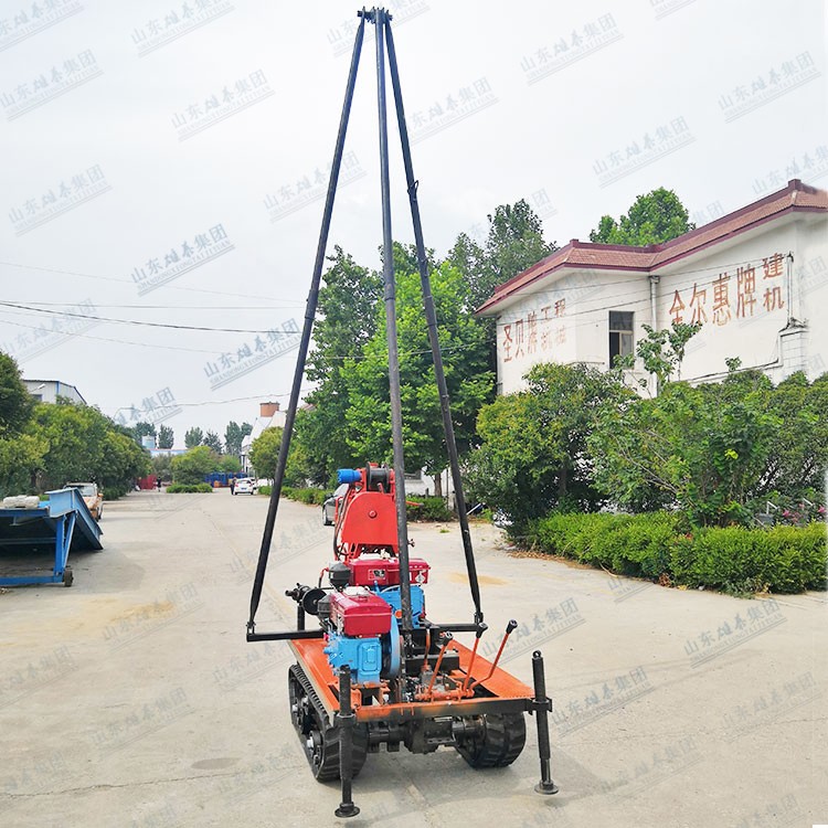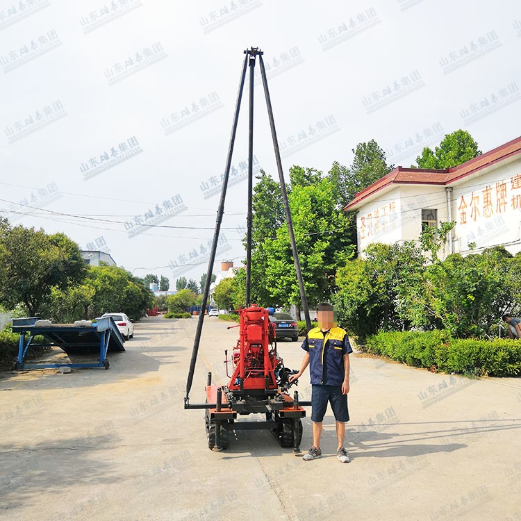 我廠生產(chǎn)的BZ-50SL型鉆機(jī),是在50系列鉆機(jī)的基礎(chǔ)上升級(jí)改造的,解決了傳統(tǒng)小型液壓鉆機(jī)鉆桿短,鉆進(jìn)時(shí)需要反復(fù)提鉆下鉆的作業(yè)模式,該機(jī)型新增了履帶底盤,減輕了用戶的轉(zhuǎn)場負(fù)擔(dān),提高了作業(yè)效率,鉆桿取芯鉆具等放在底盤上,發(fā)動(dòng)機(jī)器就可以轉(zhuǎn)場了,同時(shí)增加了移機(jī)功能,鉆桿長度達(dá)到2米,鉆塔高度4.5米,精簡了作業(yè)流程,換桿不需要拆卸牛頭,提升了鉆進(jìn)速度。