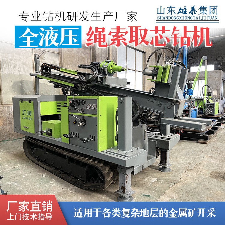 山東雄泰集團(tuán)自主研發(fā)生產(chǎn)的履帶式全液壓鉆機(jī)的無(wú)線遙控行走、液壓桅桿自動(dòng)升起,動(dòng)力頭自動(dòng)左側(cè)移機(jī)提鉆為該款鉆機(jī)一大特色。其中桅桿自動(dòng)升起,動(dòng)力頭移機(jī)為我公司實(shí)用新型專利,極大緩解了現(xiàn)場(chǎng)施工的難度,有效減小了鉆機(jī)施工人數(shù),節(jié)約了成本,該履帶式全液壓鉆機(jī)分別采用76KW/115KW發(fā)動(dòng)機(jī),動(dòng)力強(qiáng)勁,扭矩大,適用于各類復(fù)雜地層的金屬礦開采。
