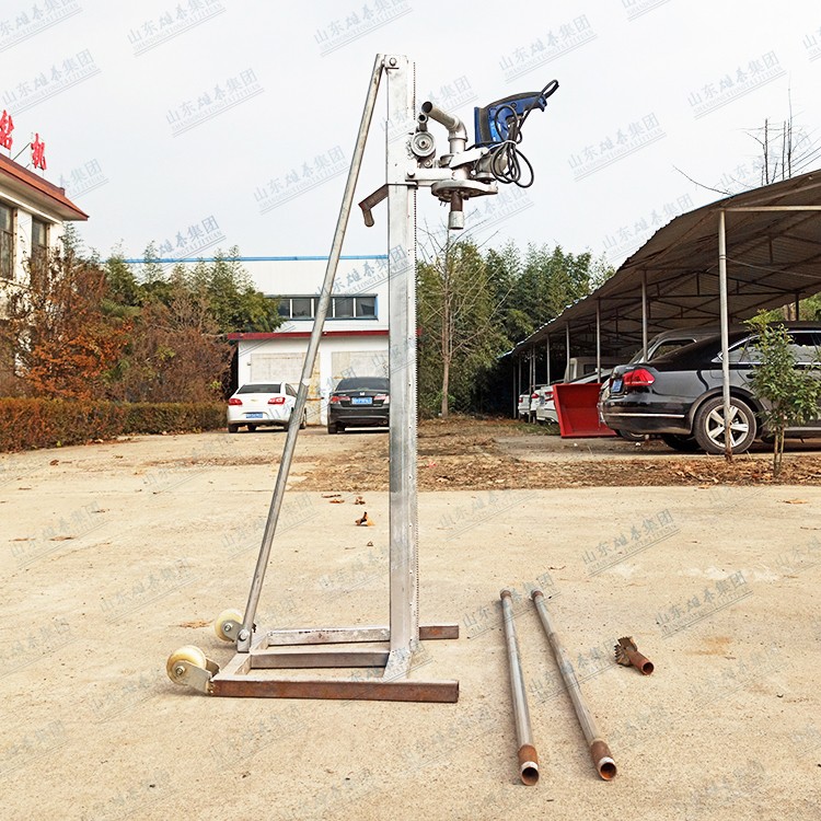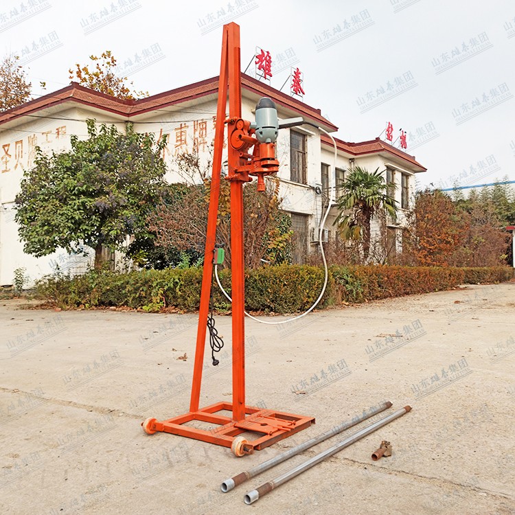 本款打井機采用了多齒輪設計,雖然增加了生產成本和制造工藝,但這樣設計增加了打井機力量(就像汽車一檔比四檔有力、還便于掌握一樣的道理),打井有力,打井速度快、便于掌握。如果齒輪少了,一千瓦的電機還沒有七百多瓦的電機力量大、而且轉速高、打井時難于掌握。這款多齒輪結構鉆井機經過許多用戶多年使用,打井效果非常理想!便攜式小型民用電動打井機廣泛應用于家庭/工廠生活用水打井、農田灌溉水井、安裝水空調、工地打樁等。本公司生產的便攜式小型民用電動打井機機頭,可隨意選配鉆頭,鉆頭價格另算。也可另配鉆桿,鉆桿直徑是32mm、一根長約1.5米。