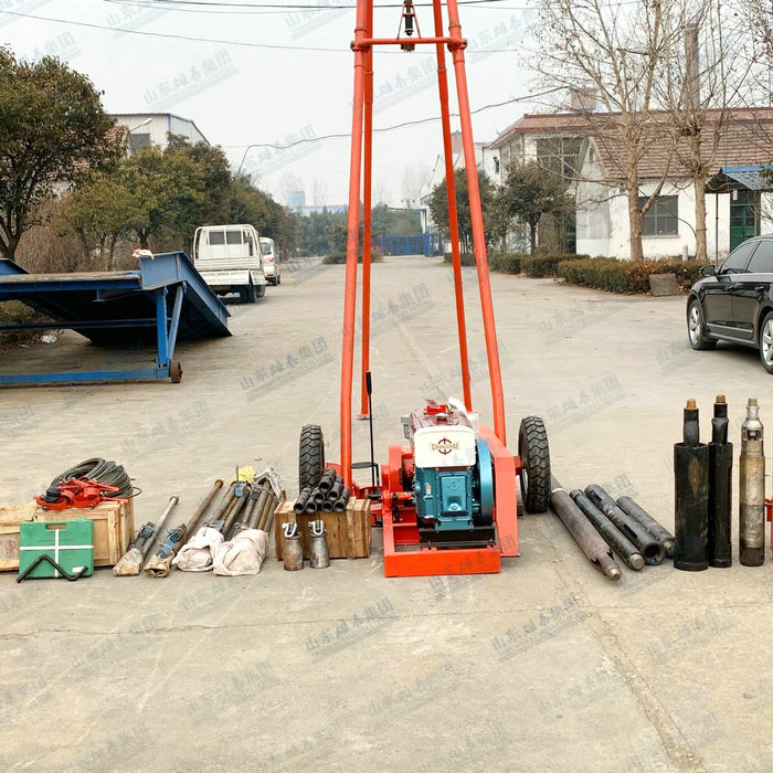 SH30-2A型鉆機操作簡單而且機械化程度高, SH30-2A型鉆機重量輕、結構緊湊、解體性能好、搬運方便,在山區可拆搬,因配備有一對膠輪,故在城市和其它道路平坦地區可用汽車拖帶來實現施工孔位的移動。